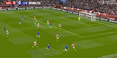 第12分钟,有点危险!桑切斯横传,萨尔停球遭到萨卡逼抢