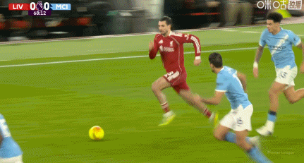非常相似,唯一的区别是,萨拉赫被拉扯了球衣,而拉克鲁瓦是手放在肩膀上。而且距离也是类似的,甚至格伊和鲁本-迪亚斯之间的距离可能更远于两名水晶宫中后卫之间的距离。